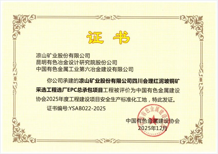 2026年伊始,位于四川会理的凉山矿业红泥坡铜矿项目建设项目现场热潮涌动,捷报频传。1月12日,随着最后一层岩壁的精准爆破与顺利打通,该项目西采区辅助斜坡道实现全线精准贯通,这标志着该矿山井下交通网络建设取得了关键突破,为矿山的高效开发和安全生产奠定了坚实基础。1月13日,在该项目2025年度总结表彰暨2026年项目建设动员大会上,六冶项目建设团队荣获多项表彰。
